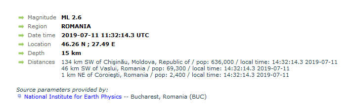 Activitate seismică la 19 km de Bârlad: cutremur de 2,6 grade pe scara Richter