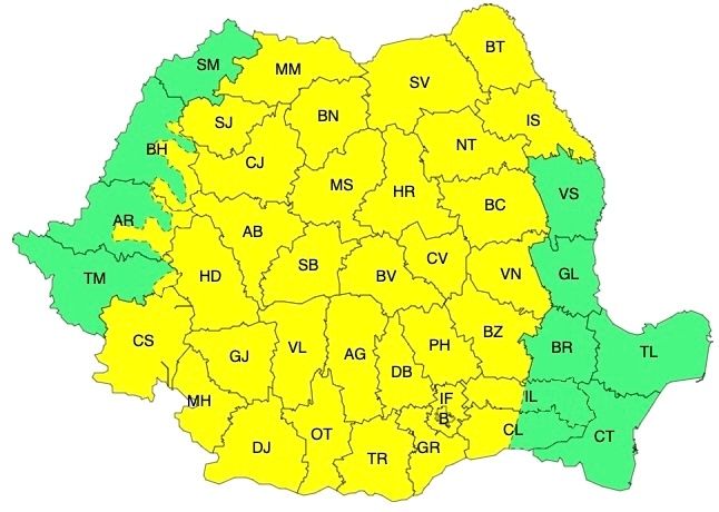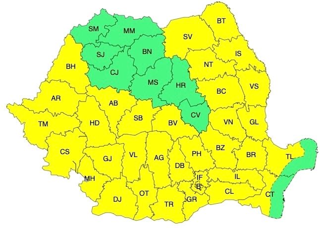 Administrația Națională de Meteorologie a emis atenționări cod galben de caniculă și instabilitate termică accentuată. Temperaturile de foc vor alterna cu furtuni cu grindină.