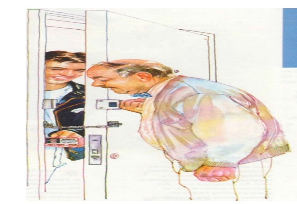 - Fiți precauți când la ușă se prezintă, fără a fi solicitat vreun serviciu, persoane necunoscute care declară că reprezintă companiile de utilități ( gaz, curent, primărie, cablu TV, etc.) sau care pretind a fi angajaţi a unor supermarketuri/vânzători ambulanţi ce oferă gratuit (ori la preţuri avantajoase) diferite produse, sau prezintă diverse promoții – nu permiteți accesul lor în locuință, sau dacă totuși o faceți, nu îi lăsați nesupravegheați nici măcar pentru scurt timp;