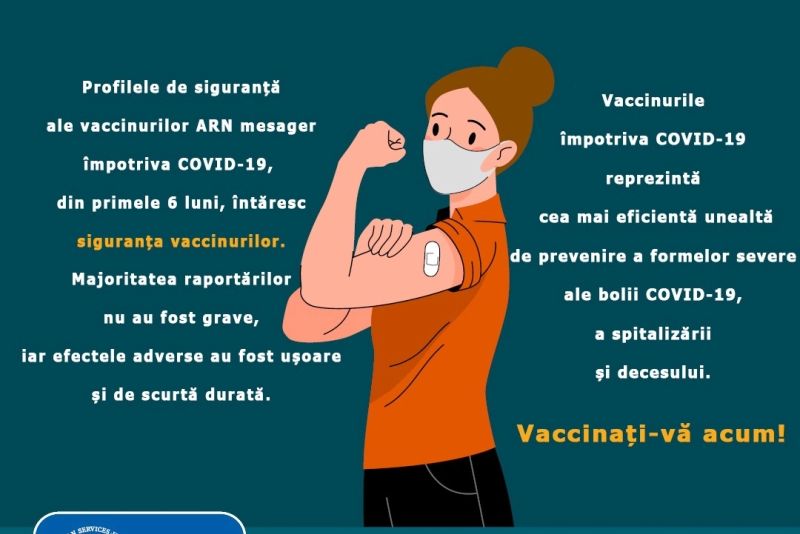 Vaccinurile împotriva COVID-19 sunt sigure și eficiente, o spun din nou reprezentanții CNCAV, care citează un studiu realizat de Centrul pentru Prevenirea și Controlul Bolilor (CDC) din SUA. Potrivit studiului CDC care este realizat într-o perioadă de șase luni de monitorizare a pacienților care au fost vaccinați, numărul de decese raportat a fost mai mic decât cel așteptat.