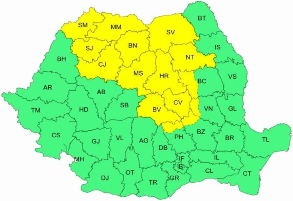 Potrivit ANM, în Maramureș, cea mai mare parte a Transilvaniei, în nord-vestul Moldovei și local la munte vor fi perioade cu instabilitate atmosferică, ce se va manifesta prin averse torențiale, descărcări electrice, intensificări ale vântului (rafale de 50...70 km/h) și izolat grindină.