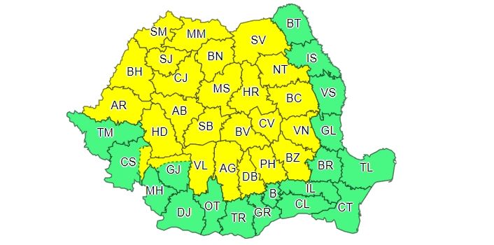 Cod galben de ploi și vijelii. Unde vor avea loc fenomenele extreme - HARTĂ