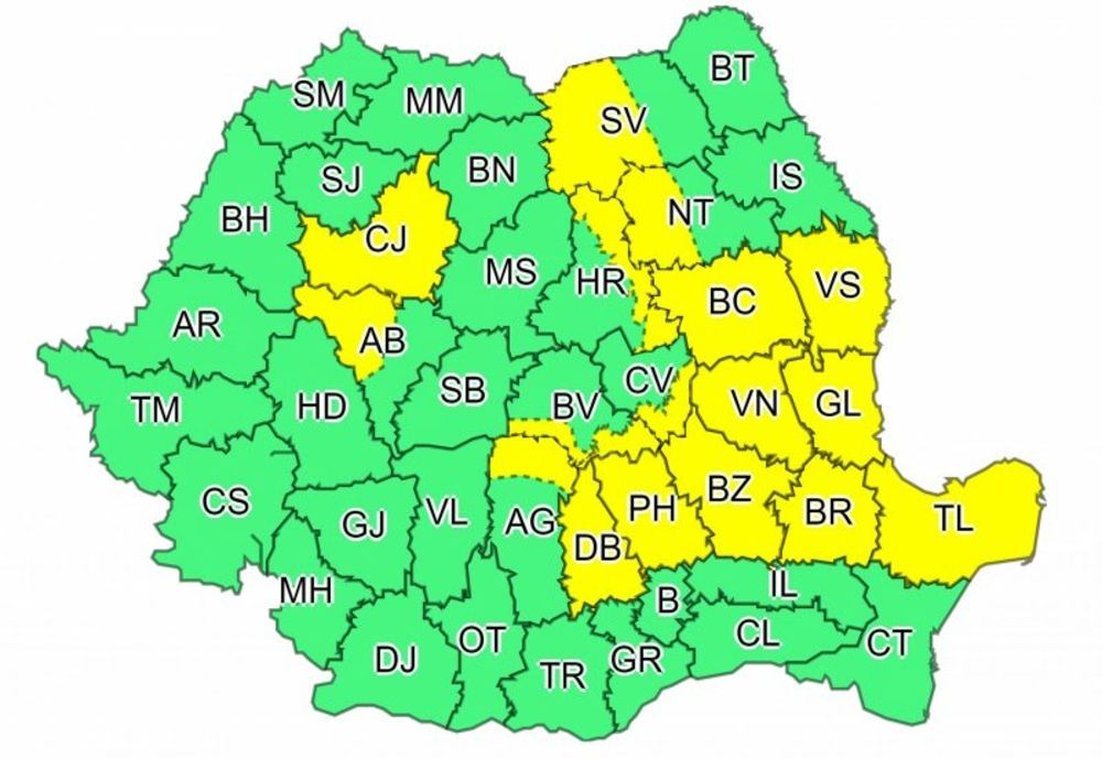 Potrivit meteorologilor, în intervalul menționat, local la munte, în Moldova, nordul Munteniei și al Dobrogei vor fi perioade cu instabilitate atmosferică accentuată, ce se va manifesta prin averse ce vor avea și caracter torențial, descărcări electrice, intensificări ale vântului, vijelii și grindină. Cantitățile de apă vor depăși pe alocuri 25…45 l/mp.