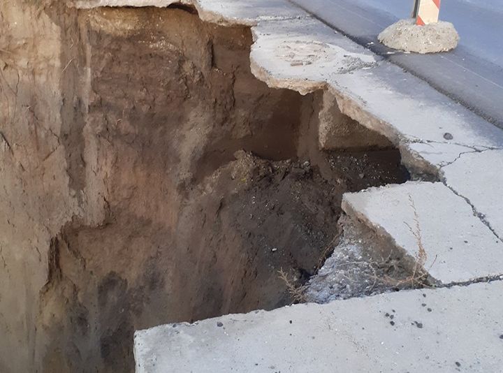 Un adevărat crater s-a format la kilometru 59+400 al Drumului Național 11A, de la limita județelor Bacău și Vrancea, după ce o porțiune de șosea s-a surpat, punând în pericol traficul din zonă.