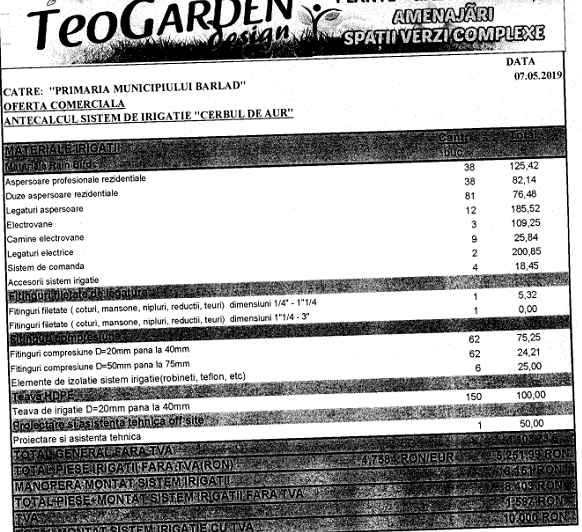 Conform devizului întocmit și transmis primăriei Bârlad, doar manopera se ridică la suma de
