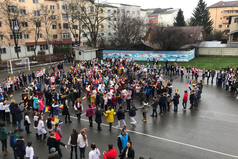 FOTO: Curtea Școlii ”Elena Cuza” Vaslui, transformată într-o Mare horă a Unirii