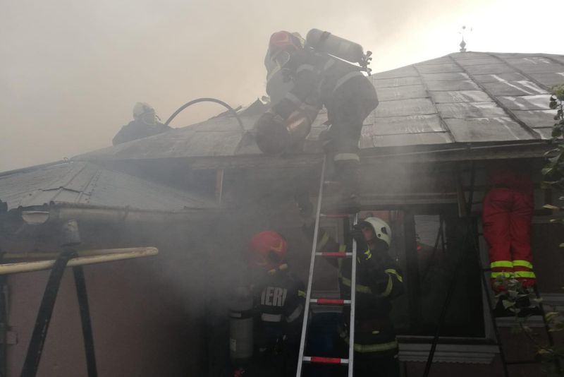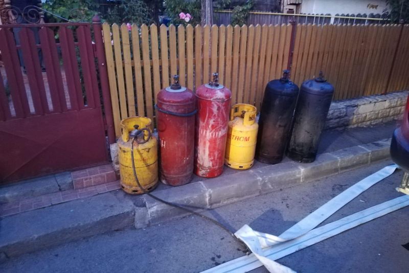 Incendiu la două case în municipiul Huși: Pompierii au scos 6 butelii din foc!