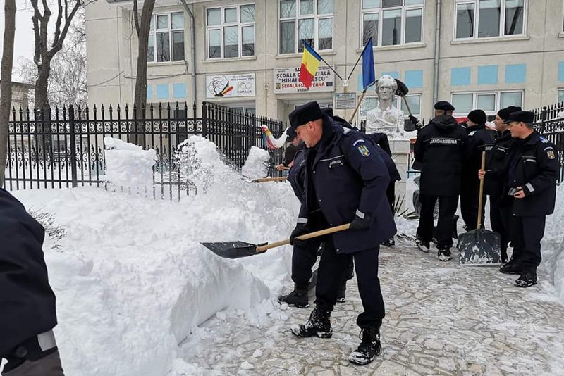 Mai multe școli din municipiul Vaslui au fost deszăpezite de subofițeri ai Inspectoratului de Jandarmi Județean (IJJ) Vaslui.