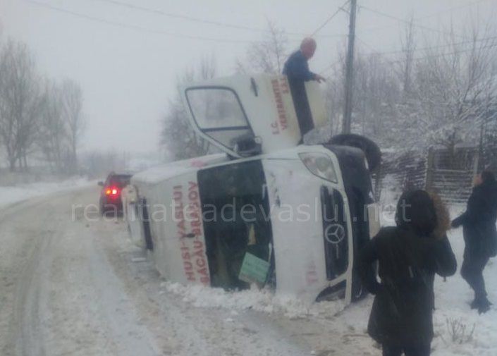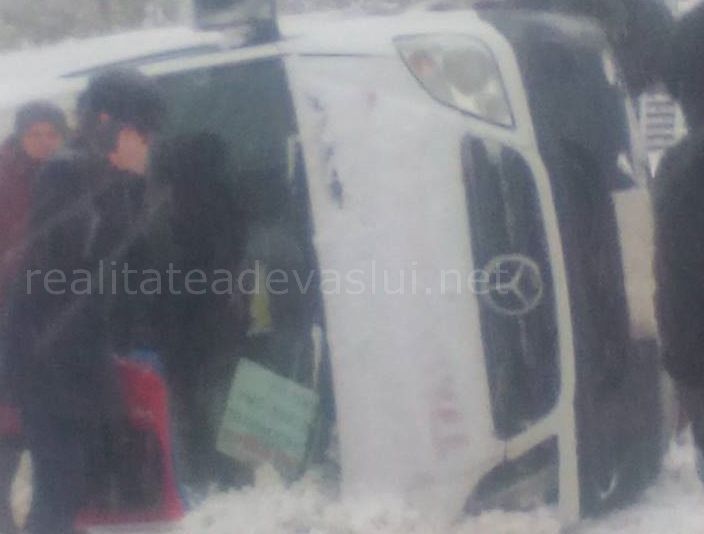 Un microbuz cu mai multe persoane la bord, care efectua curse regulate între Vaslui și Bârlad (prin Dragomirești), s-a răsturnat în afara carosabilului pe Drumul Județean 243 în localitatea Puiești.