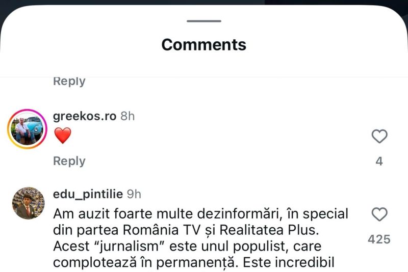„Am auzit foarte multe dezinformări, în special din partea România TV și Realitatea Plus. Acest jurnalism este unul populist care complotează în permanență. Este incredibil cum mulți români cred în astfel de conspirații și minciuni. România are în dumneavoastră un președinte de valoare cum nu am văzut în ultimii ani”, mai spune o altă persoană.