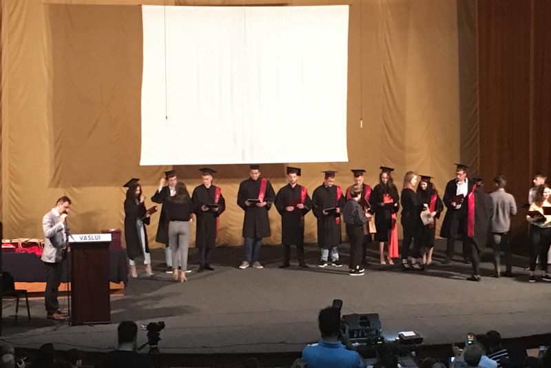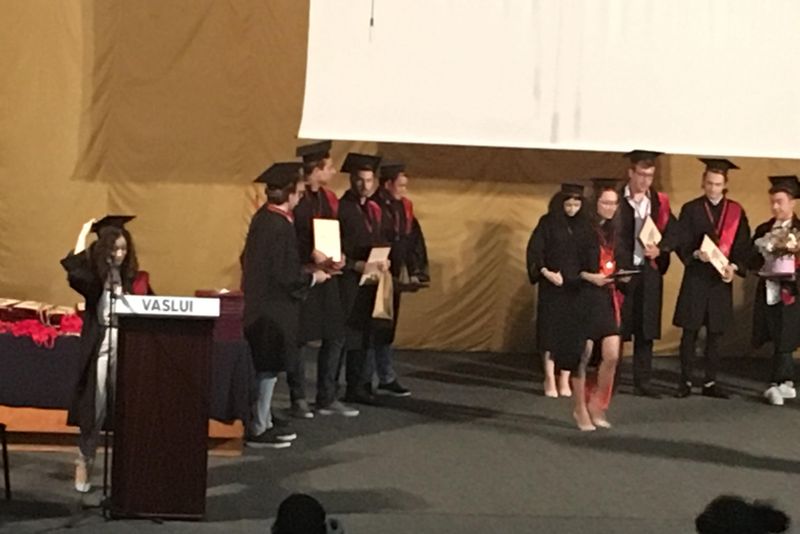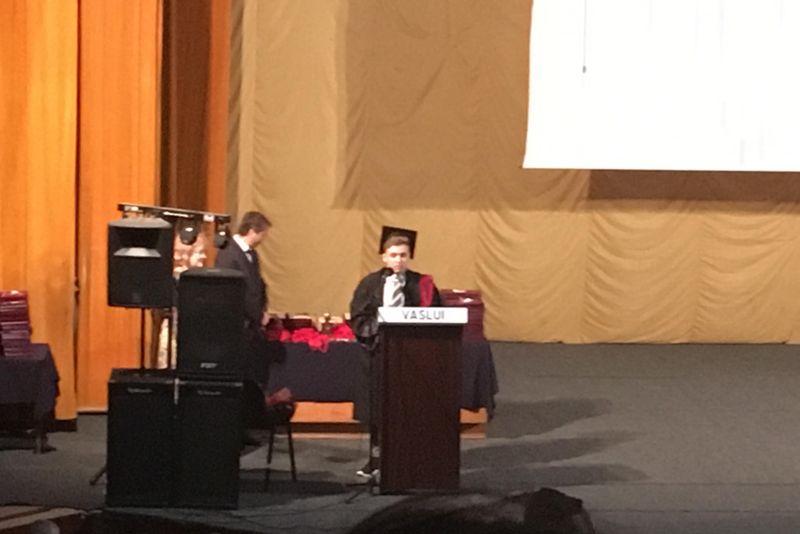 Conducerea liceului vasluian a ţinut să-i cinstească în cadru festiv, strigând pentru ultima oară cataloagele.Cei 243 de proaspeţi absolvenţi au răspuns prezent, iar momentul festiv a fost unul încărcat de sentimente, nelipsind lacrimile de fericire, ţinând cont că dascălii acestei şcoli se despart de o altă generaţie promiţătoare.„Este un moment emoţionant, ţinând cont că ne despărţim de o nouă generaţie de elevi. Suntem foarte bucuroşi că am ajuns la un capăt de drum cu ei. Suntem foarte mândri de ceea ce au realizat şi de faptul că au fost elevii liceului nostru. Anii de liceu rămân unici în viaţa fiecăruia. Porniţi spre lumea celor patru puncte cardinale plini de speranţe, însă gândurile voastre rămân aproape de şcoală. Mult succes la bacalaureat”, a spus Daniel Hulubei, directorul LER Vaslui.Proaspeţii absolvenţi au fost felicitaţi de autorități, care au ţinut să le ureze mult succes tuturor elevilor la examenul de bacalaureat.Şef de promoţie în acest an este Andrei Georgiani Talpalaru, care a primit o statuietă din partea conducerii liceului, care să-i amintească de perioada de licean de-a lungul vieţii.https://www.youtube.com/watch?v=IW8fxmhAubU&feature=youtu.beEl a urmat profilul mate-info și a încheiat cei patru ani de liceu cu media 9.95.GALERIE FOTO