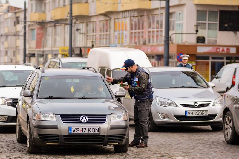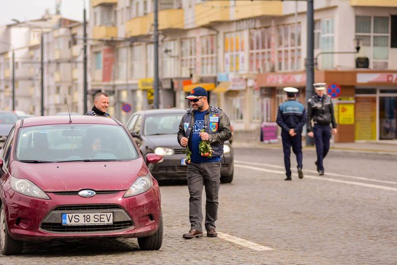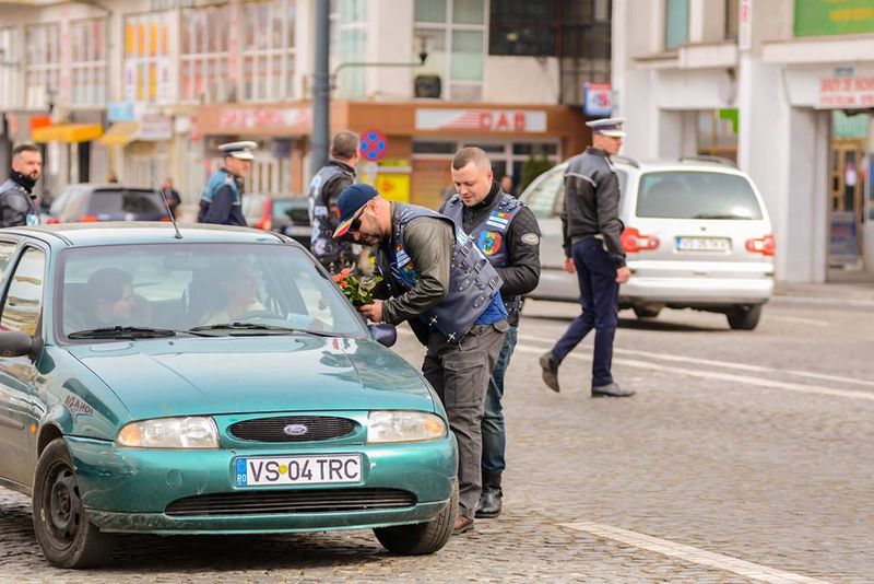 Cu ocazia zilei de 8 Martie, poliţiştii vasluieni cu sprijinul clubului moto Blue Knights Romania IV au oferit flori femeilor care s-au aflat în trafic, în calitate de conducător auto sau pasager.Astfel, doamnele şi domnişoarele surprinse în trafic au fost “amendate” de poliţişti cu flori, felicitări şi un sfat preventiv pentru siguranţa lor. Nu este pentru prima dată când poliţiştii au lăsat la o parte procesele verbale şi au oferit flori şi felicitări conducătoarelor auto, le-au adresat mulţumiri pentru conduita preventivă avută în trafic, dar şi câteva recomandări privind siguranţa traficului rutier, dorindu-le un drum bun, fără evenimente.Gestul s-a adresat tuturor doamnelor şi domnişoarelor pe care colegii noştri și membrii clubului le-au întâlnit în trafic, dar şi celor pornite la scurte plimbări sub razele unui plăcut soare primăvăratec.GALERIE FOTO