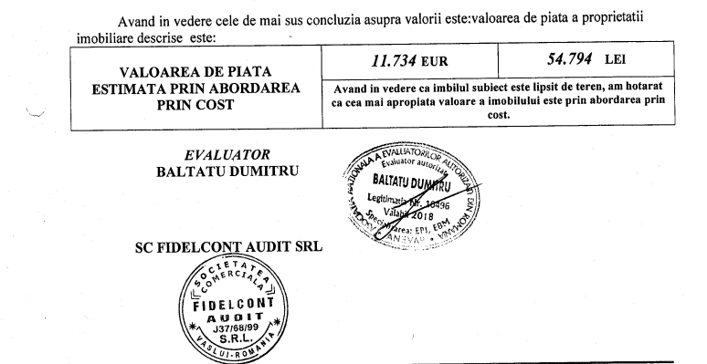, care a decis cea mai apropiată valoare prin abordarea prin cost.Singura motivare consemnată pe actul de evaluare a fost