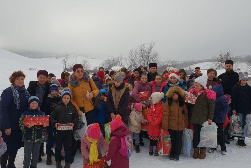 Aici, un număr total de 300 de copii au primit daruri de Crăciun şi încălţăminte nouă pentru iarnă.