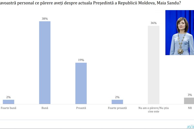 Cu toate acestea, percepția despre președintele Maia Sandu este prepondent, pozitivă, cu 40% dintre cei chestionați având o părere bună sau foarte bună, față de 21% care au o opinie negativă sau foarte negativă.