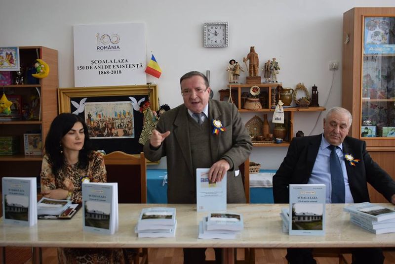 Într-o atmosferă de sărbătoare, foști și actuali dascăli ai gimnaziului lăzean au asistat la un moment artistic oferit de elevi, după care profesorii Mirela și Vasile Ilie au prezentat monografia școlii Laza, prefațată de inspectorul școlar Nicolae Ionescu.”Mă bucur că aceste activități se desfășoară sub edgida centenarului Marii Uniri. În județul Vaslui, peste o mie de manifestări cultural-artistice au avut loc în acest an și ele trebuie să continue. Trebuie să fie o stare de spirit în rândul nostru și să cultivăm foarte mult darul unității. Astăzi, școala de la Laza ne-a prezentat și un aspect educativ. Are un imn al școlii, elevii s-au prezentat în costum național, fiindcă ia este un semn al identității naționale. Promovând tradițiile, va dăinui în continuare statul românesc”, a spus Nicolae Ionescu.Lucrarea aduce informații despre școala din Laza, autorii având nevoie de o cercetare minuțioasă a fondurilor arhivistice, discuții cu foste cadre didactice și localnici, pentru a duce la împlinire un vis mai vechi.”Școala Laza a fost înființată în anul 1868, ca urmare a prevederilor Legii nr.1150 din 25 noiembrie 1864, asupra instrucțiunii publice din Principatele Unite Române, publicată în Monitorul Oficial din 25 noiembrie 1864, care consfințea principiul modern de separare a școlii de biserică și constituirea unui învățământ primar, public, de 4 ani, general, gratuit și obligatoriu pentru toți copiii cu vârsta între 7 și 12 ani. În comuna Laza au început pregătirile pentru asigurarea condițiilor înființării școlii și în bugetul comunal din 1866, la capitolul cheltuieli a fost prevăzută suma de 3.000 lei, pentru facerea unei case pentru școală. În primii ani de existență, Școala Laza s-a confruntat cu mai multe greutăți în ceea ce privește asigurarea frecvenței zilnice a elevilor, încadrarea cu personal didactic. Școala a funcționat cu un singur post de învățător până în anul 1904, când s-a înființat postul al doilea, apoi numărul posturilor didactice a crescut continuu, în funcție de populația școlară”, a precizat Radu Ilie, directorul Școlii Laza.Un moment important din viața școlii l-a reprezentat prezența Luceafărului poeziei românești, Mihai Eminescu, care avea să inspecteze unitatea școlară.”La data de 27 aprilie 1876, Școala din Laza a fost inspectată de revizorul școlar pentru județele Iași și Vaslui, Mihai Eminescu. Cu această ocazie, marele poet a întocmit un proces verbal, iar în raportul adresat ministrului Instrucțiunii Publice, revizorul școlar arăta că în perioada 26-30 aprilie a inspectat mai multe școli rurale din județ, constatând că școala din Laza este foarte bună”, a precizat Vasile Ilie, unul dintre autorii monografiei.Prefectul Eduard-Andrei Popica a precizat că este un privilegiat al sorții, prin prezența la un eveniment unic din viața unei școli.”Este un moment istoric și aduc mulțumiri organizatorilor și celor doi autori care sunt convins cu multă muncă au reușit să scoată această capodoperă. Este o operă ce va rămâne posterității și de care viitorii noștri copii vor profita în aflarea adevărului despre locurile unde am copilărit, am învățat și am crescut”, a spus prefectul.La rândul ei, Gabriela Plăcintă, inspectorul general al Inspectoratului Școlar Județean Vaslui, a ținut să felicite conducerea școlii, pe care o consideră printre cele mai bune din mediul rural.”Vin cu mare drag la această școală, una dintre cele mai bune din mediul rural. Acțiunea noastră de pe 29 noiembrie a avut ecou la nivel național, primind foarte multe mesaje de felicitare. Un învățător din Botoșani mi-a trimis câteva cărți, pentru a premia școlile care s-au evidențiat la această acțiune a noastră. Prima o ofer cu mare drag școlii din Laza. Mi-aș dori să am 150 de asemenea cărți, pentru a premia toate școlile fiindcă fiecare a avut o implicare extraordinară și felicit pe fiecare în parte”, a spus Gabriela Plăcintă.La final, Grupul ”Sfânta muceniță Chiriachi” de la Episcopia Hușilor a onorat invitația preotului paroh Corneliu Halapciug, prezentând un scurt moment de colinde.”În comuna Laza, ne-am străduit ca primăria, școala și biserica să fie coloana vertebrală a comunității. Mulțumim grupului de la Episcopie pentru că a onorat invitația noastră și ne-a oferit un moment unic, introducându-ne în atmosfera sfintei sărbători a Crăciunului”, a spus preotul Corneliu Halapciug.GALERIE FOTO
