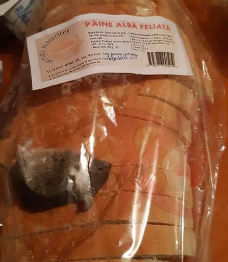 Un bărbat din localitatea vasluiană Berezeni a postat pe Facebook o fotografie în care se vede un șoarece mort într-o pungă cu pâine feliată. El susține că a cumpărat produsul dintr-un lanț de supermarketuri cunoscut la nivel național.