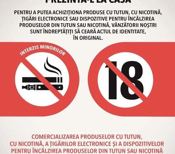 ”Studiile arată că expunerea timpurie la produsele din tutun creşte riscul de dependenţă şi afecţiuni grave pe termen lung, cum ar fi bolile cardiovasculare, cancerul pulmonar şi alte afecţiuni respiratorii. Comerţul trebuie să asigure respectarea cadrului legal şi să contribuie activ la prevenirea accesului tinerilor la produse nocive, asumând un rol important în protecţia generaţiilor viitoare. În conformitate cu legislaţia în vigoare, magazinele pot fi sancţionate pentru vânzarea de produse din tutun minorilor. Obligativitatea afişării unui mesaj vizibil reprezintă o măsură de conformare şi responsabilitate legală, conform ordinului ce face obiectul publicării”, a precizat sursa citată.