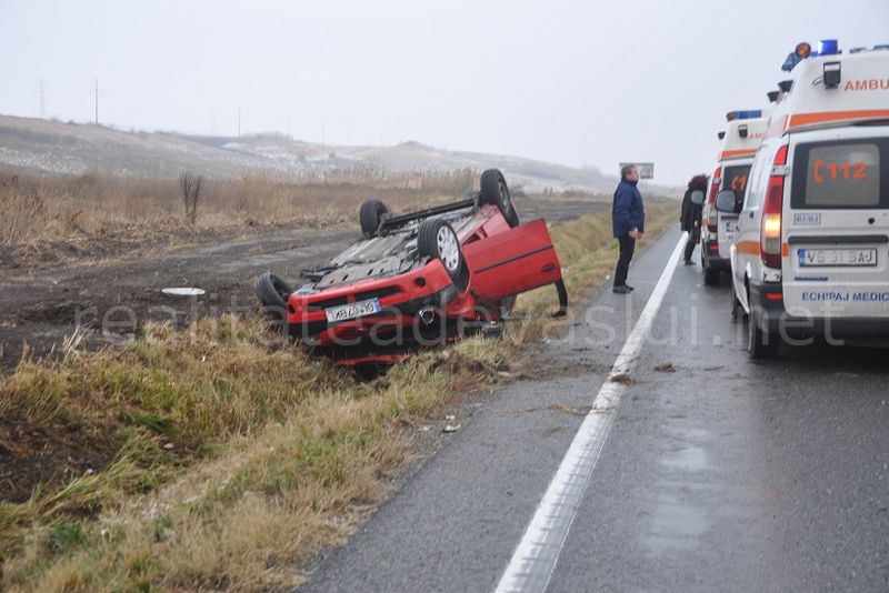 Trei persoane au ajuns în această dimineață la spitalul municipal de urgență „Elena Beldiman” din Bârlad, în urma producerii unui accident în zona pensiunii Mira. Autoturismul în care se aflau trei femei s-a răsturnat în afara carosabilului.