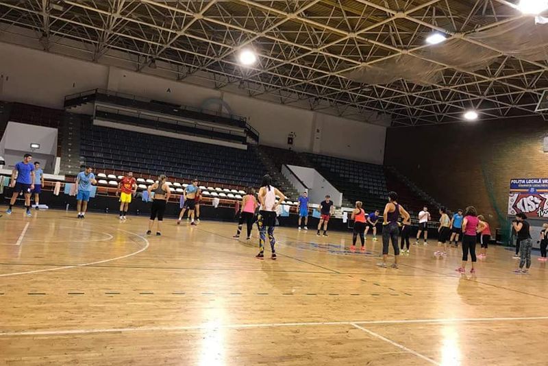 Fetele de la Aerobic Laura Hiit i-au provocat pe handbaliștii de la CSM Vaslui la un antrenament aerobic.