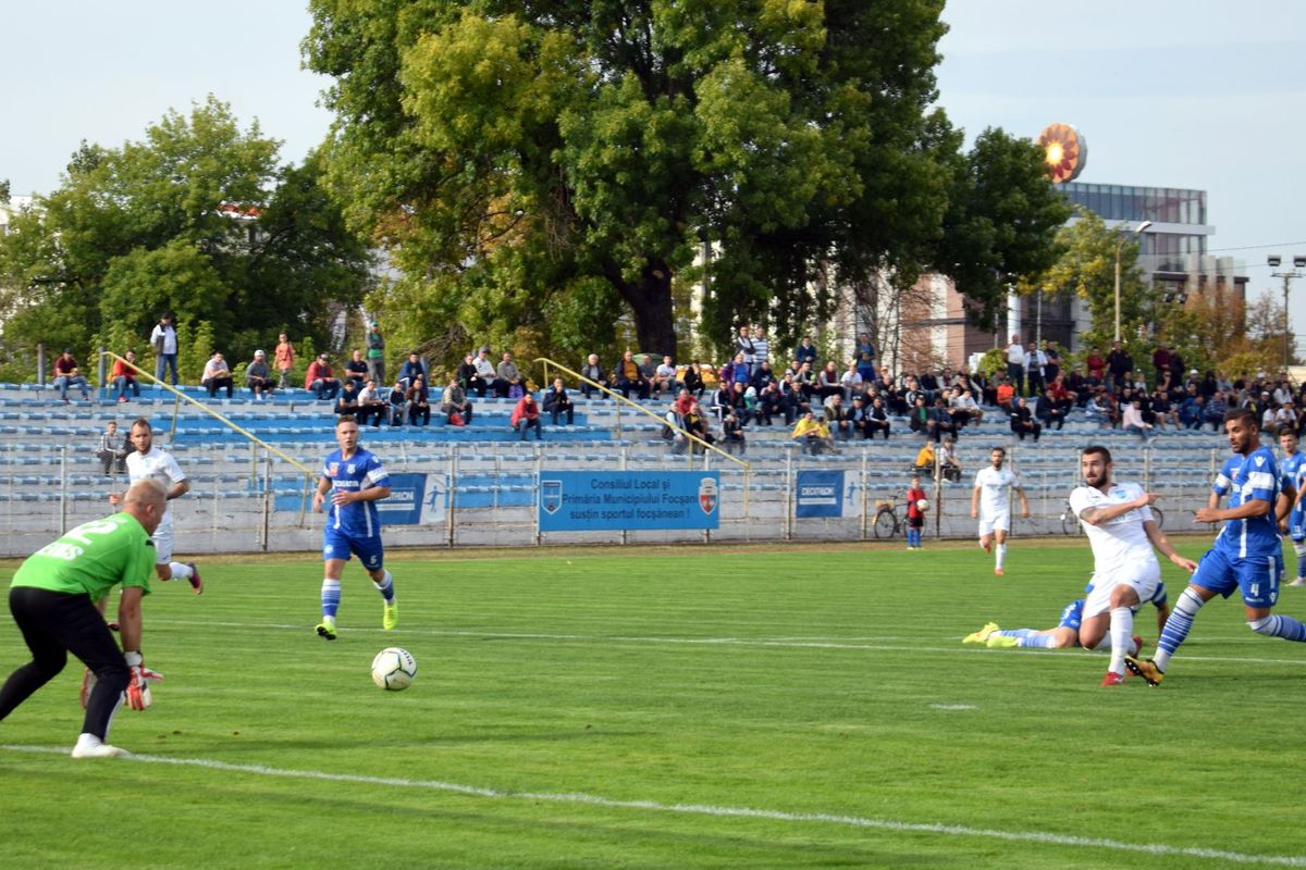 Formația antrenată de Cătălin Nicolau a fost bătută din două penalty-uri la Focșani, scor 0-2.Ambele lovituri de la 11 m au fost transformate de Ciprian Petre în minutele 32, când oaspeții au jucat mingea cu mâna în careu, și 63, după un fault în suprafața de pedeapsă.Gazdele au dominat jocul, având numeroase ocazii, în timp ce hușenii au avut la rândul lor șansa golului, neutralizată, însă, în trei rânduri de portarul Apenciucesei.Poate cea mai clară ocazie a aparținut lui Cătălin Solomon, care a ratat inexplicabil din postură de singur cu portarul.Hușana a coborât pe locul 12 în seria 1 a ligii a treia, iar etapa viitoare va evolua acasă, cu FC 2 Botoșani.
