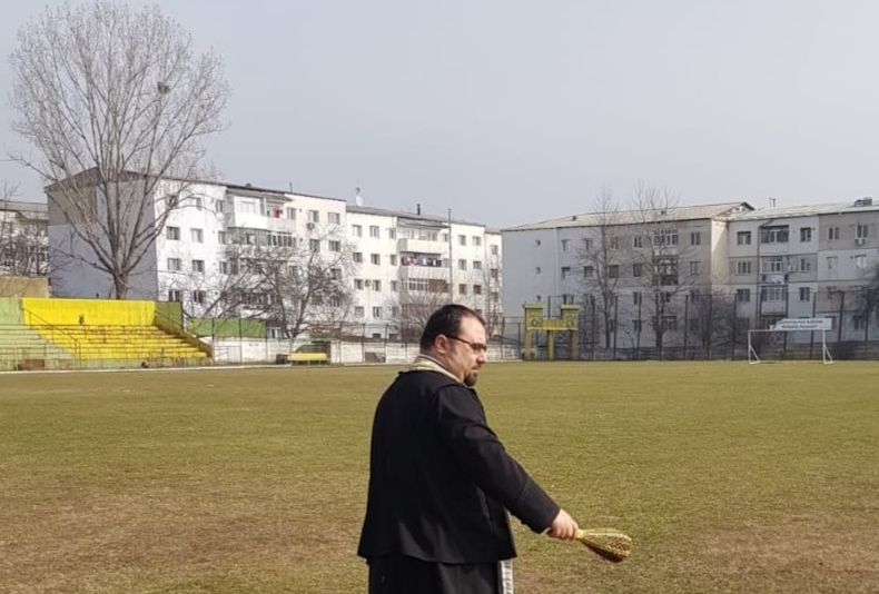 Conducătorii echipei Hușana Huși au adus preotul la stadion, pentru a sfinți terenul, vestiarele și tribunele.