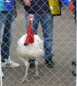 Un hușean a venit cu curcanul pe stadion